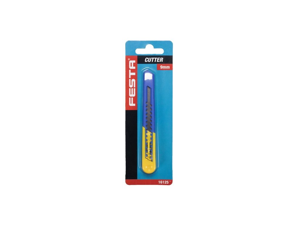 Odlamovací nůž FESTA 18mm, kvalitní materiály, automatická aretace s pojistkou, do nože lze umístit až 2 náhradní břity, blistr.