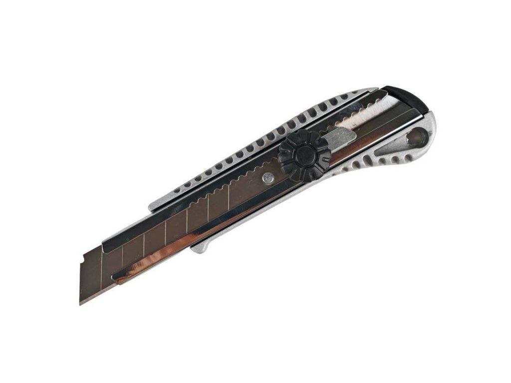 - odlamovací nůž, kovové tělo, protiskluzné drážky, ocelová vodící lišta, šroubková aretace, 18mm