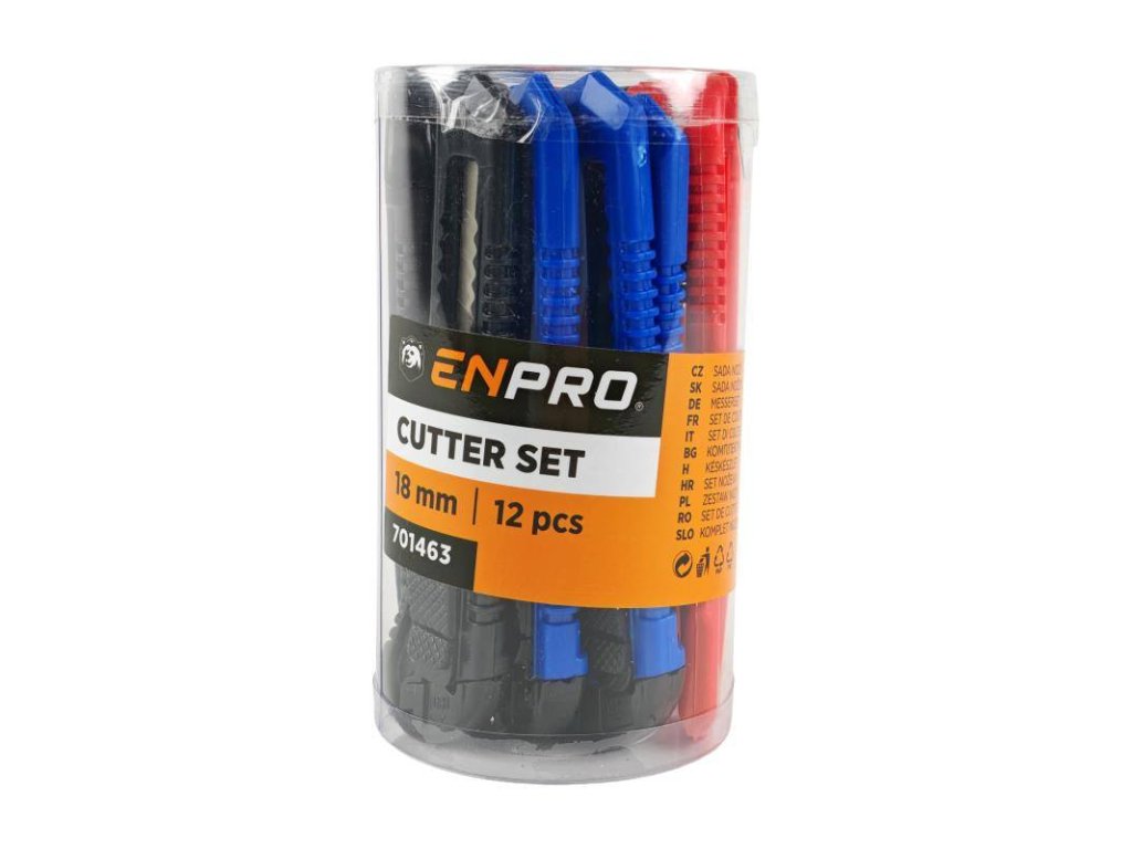 Nůž odlamovací s posuvným tlačítkem, SET dóza 12 ks, 18 mm, ENPRO