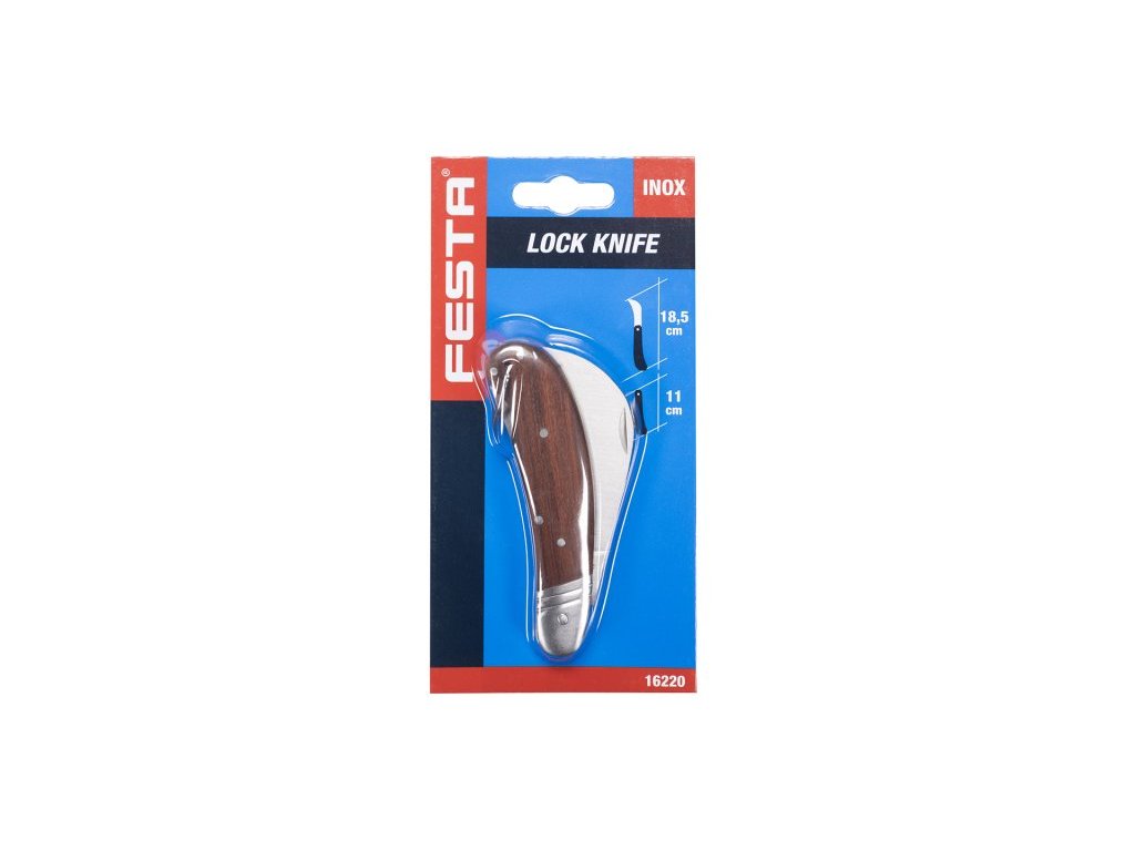 Štěpařský zavírací nůž, silná nerezová čepel, dřevěná rukojeť s kvalitním nýtovaním, univerzální zahradnický nůž pro očkování - roubování - řezání a úpravu dřevin a rostlin, délka čepele 110mm, blistr.