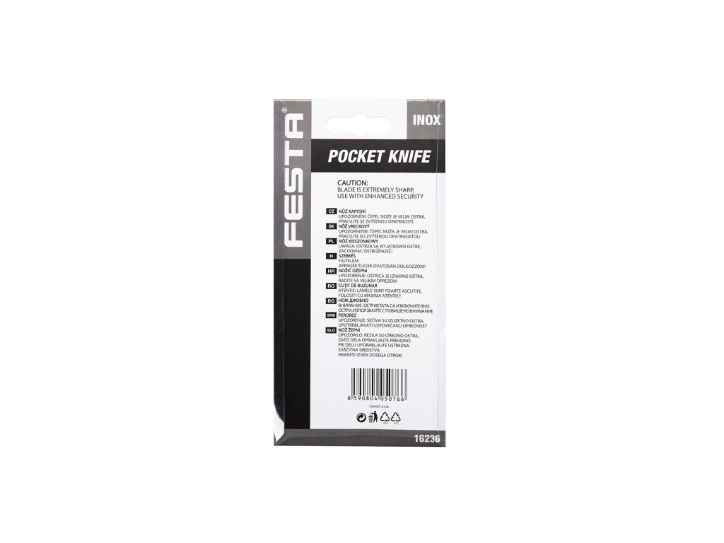 Nůž zavírací CLIP. Délka zavřeného nože je 140 mm. Nůž s velkým zavíracím nožem pro různé způsoby použití. Rukojeť plastová s uchycením na opasek. Hmotnost 0,881 kg