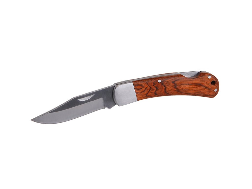 Nůž zavírací WOODY. Délka zavřeného nože je 100 mm. Nůž s velkým zavíracím nožem pro různé způsoby použití. Kvalitní dřevěná rukojeť. Zářez na čepeli pro snadné otevření. Hmotnost 0,642 kg.