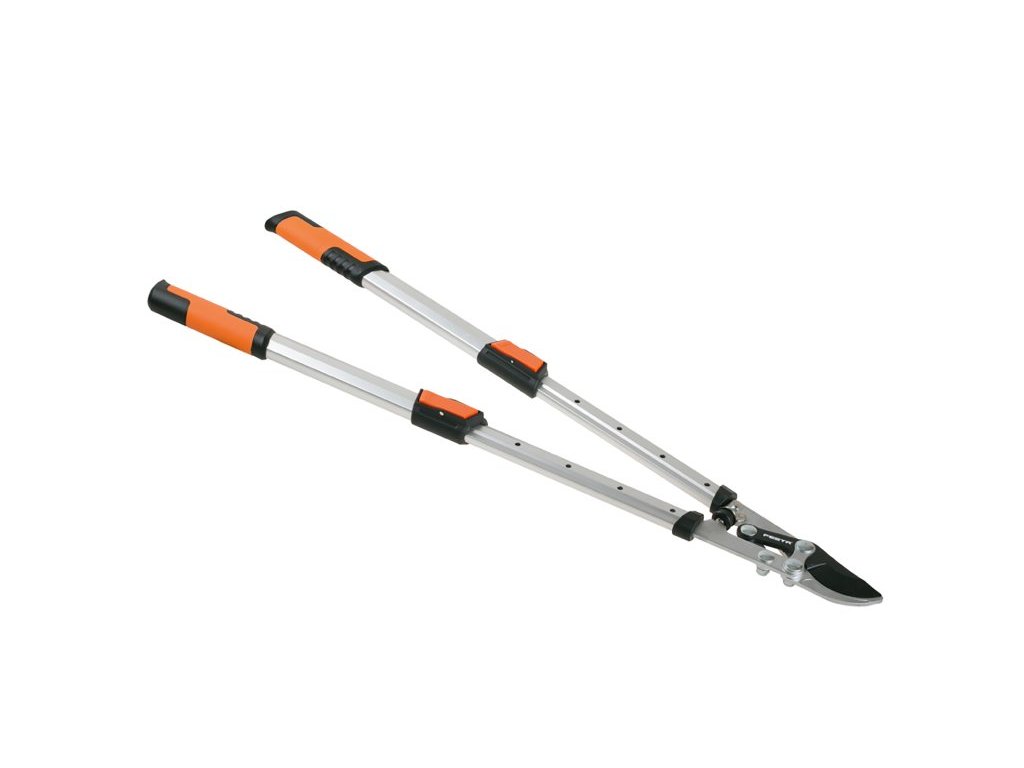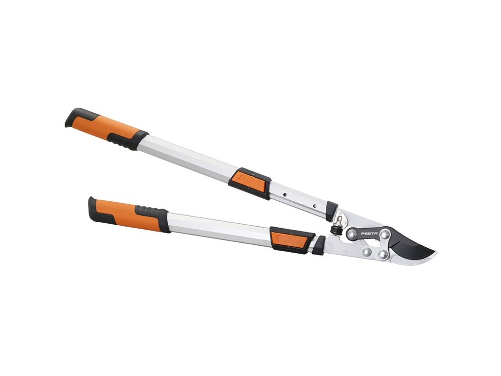 nůžky na větve FESTA - převodové s teleskopickými rameny přesně broušený nůž s nepřilnavou teflonovovou vrtstvou - ulehčuje střih a chrání ostří na tvrdé a suché větve do průměru 40 mm převodový mechanismus - usnadňuje střih a lépe přenáší vynaloženou sílu při práci hliníková profilovaná ramena s nastavitelnou délkou 660 - 900 mm - větší dosah pro střih a větší páka pro snadnější práci ergonomicky tvarované rukojeti s neklouzavých materiálů zaručují pohodlnou a bezpečnou práci
