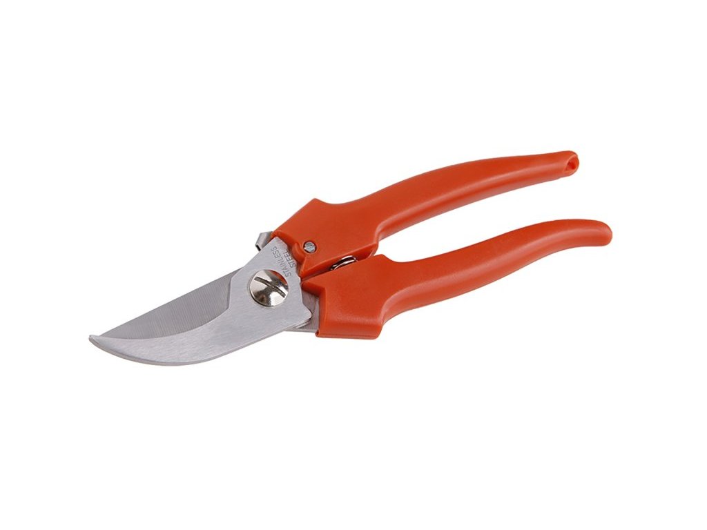 Nerezové zahradnické nůžky s plastovými ergonomicky tvarovanými ručkami, délka 190 mm, půlkulatý břit, použití : zahradnické a domácí práce.