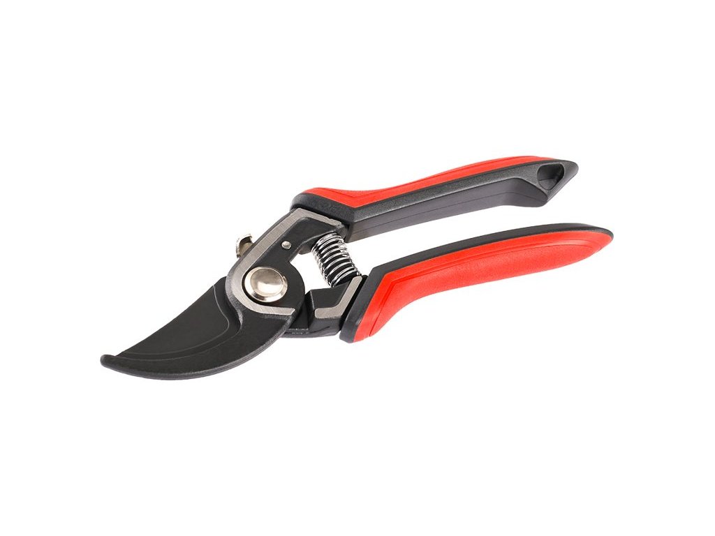 zahradnické nůžky, celková délka 21 cm čepel nůžek z japonské oceli HCS SK-5 s teflonovou vrstvou - lepší střih a ochrana ostří dvoukomponentní rukojeť - nylon s gumou v úchopové části - dvě možnosti nastavení velikosti rozsahu ostří / rukojeti pro střih dřevin a rostlin, zahradnické a dekoraterské práce, maximální průměr střihu 12 mm balení - blistr s eurootvorem