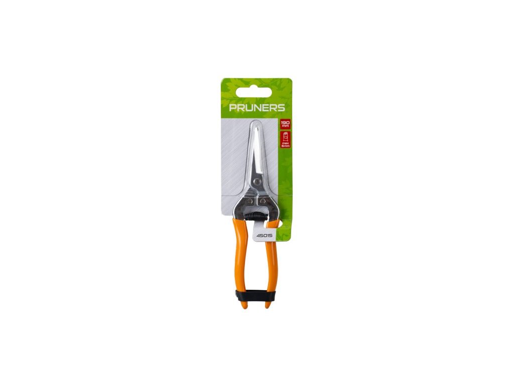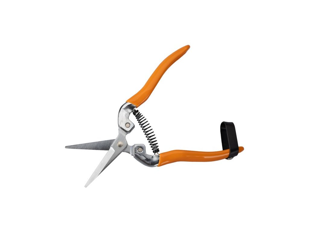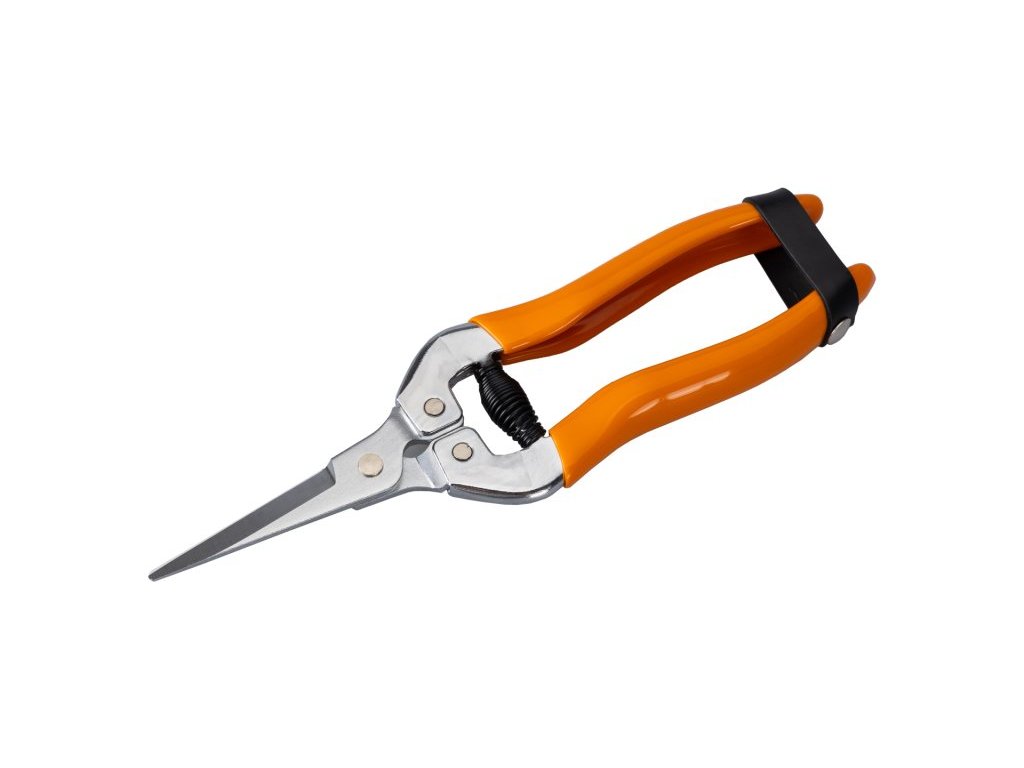 Zahradnické nůžky, rovné ostří, pogumované ergonomicky tvarované ručky, tenké rovné čepele, použití : vhodné zejména pro sklízení vinné révy a květiny - růže, celková délka 19 cm, balení : blistr s eurootvorem.