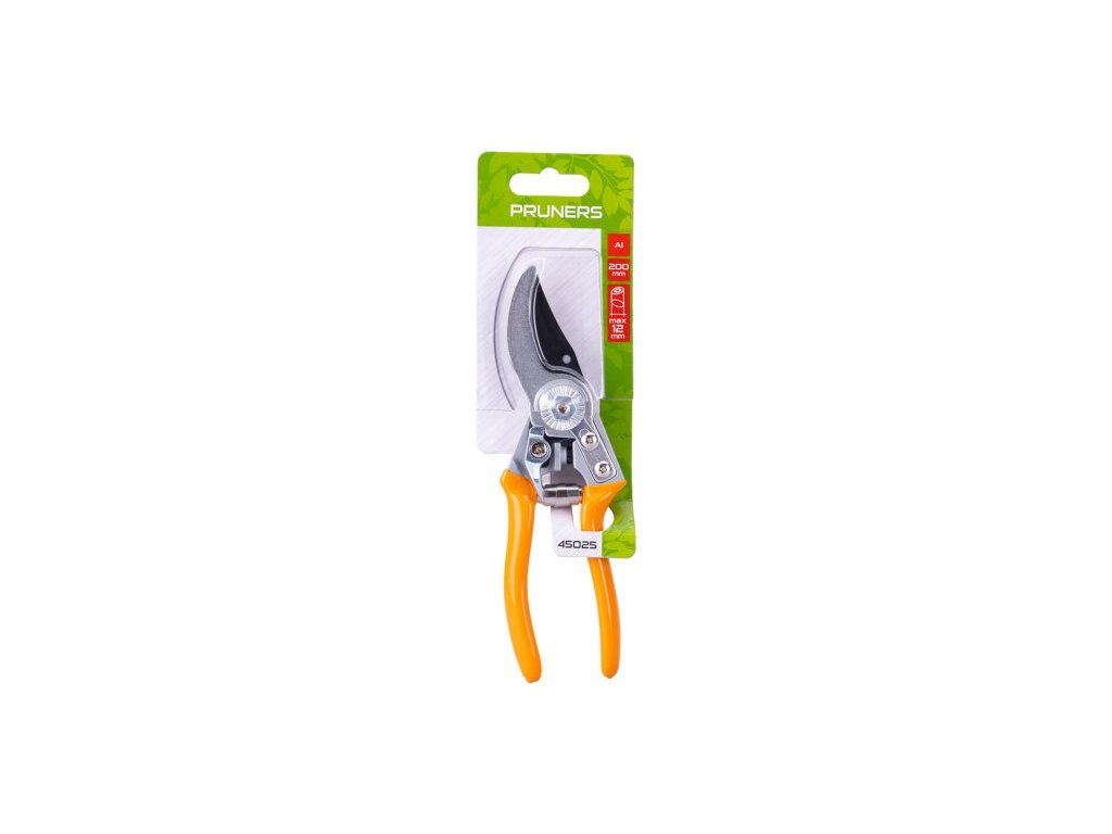 Zahradnické hliníkové nůžky s aretací a se dvěma kvalitními ocelovými břity jsou vsazeny do hliníkové kostry nůžek. Zahradnické nůžky mají na rukojetích speciální adhezivní plastový povlak proti vyklouznutí nůžek z dlaně. Celková délka 20 cm.
