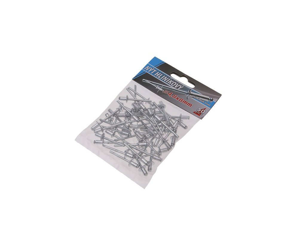 Klasické trhací slepé aluminiové nýty průměr 4,8 mm délka 8 mm v malém balení 50 kusů, vhodné pro malospotřebitele. Instruktážní video Instruktážní video