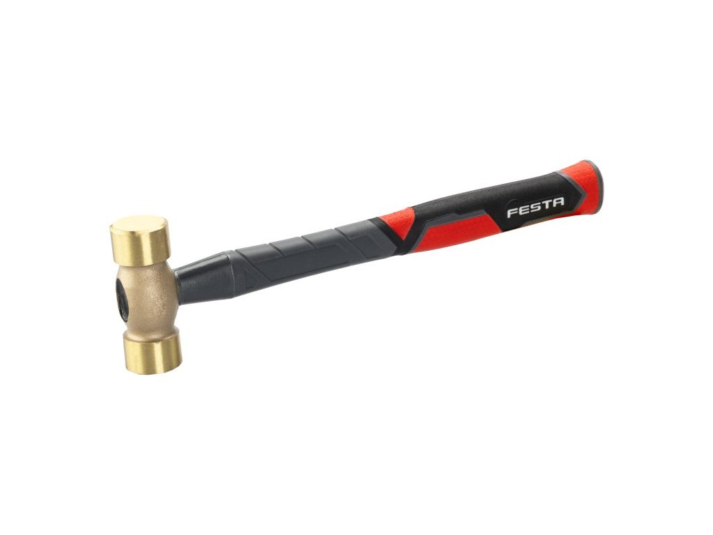 Mosazná palice FESTA 0,5 kg, průměr uderných ploch 30 mm, kvalitní sklolaminátová násada s pogumováním z TPR v úchopové části, zajištěná epoxidovým lepidlem, hlava palice je mosazná. Mosazná palice se používá tam, kde nesmí dojít při úderu k jiskření, usazování dílů atd..
