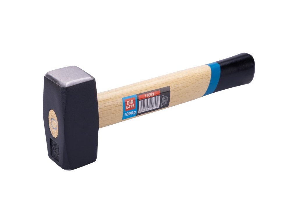 Dřevěná palice 1000g s lakovanou ergonomicky tvarovanou násadou. Hlavice kovaná oboustranná se zkosenými hranami. Kruhový klín.