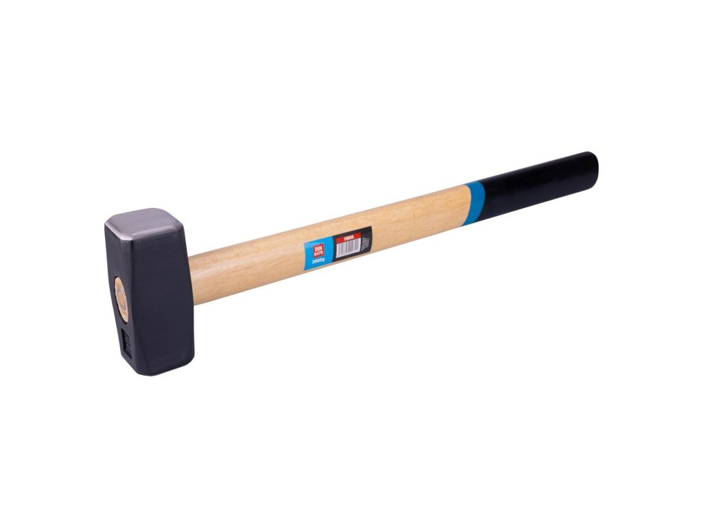 Dřevěná palice 3000g s lakovanou ergonomicky tvarovanou násadou. Hlavice kovaná oboustranná se zkosenými hranami. Kruhový klín.
