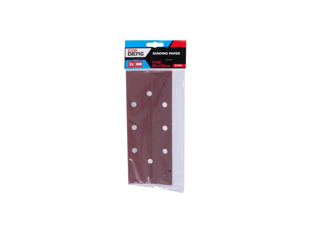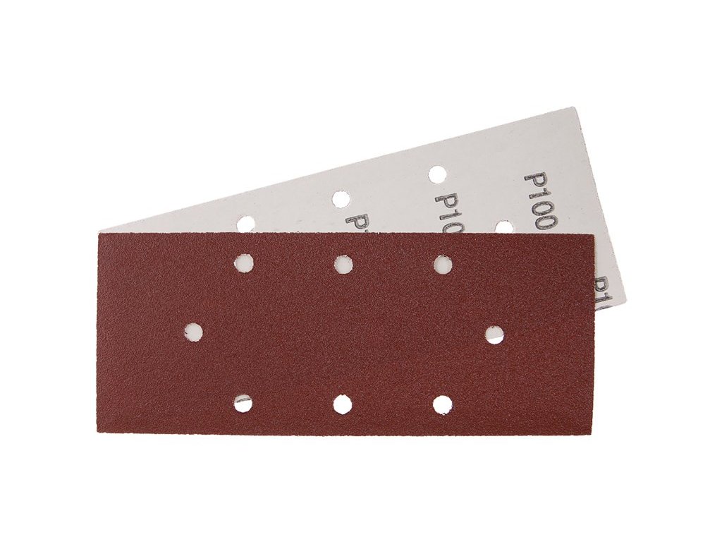 Brusný papír - sada 5kusů, zrnitost: 100, typ : 8 otvorů - Black&Decker, druh zrna: oxid hlinitý, pojivo: syntetická pryskyřice, podkladový materiál: pružný papír C (110-135g/m2), rozměry : uvedeny v názvu výrobku, balení : blistr s papírovou kartou s eurootvorem.