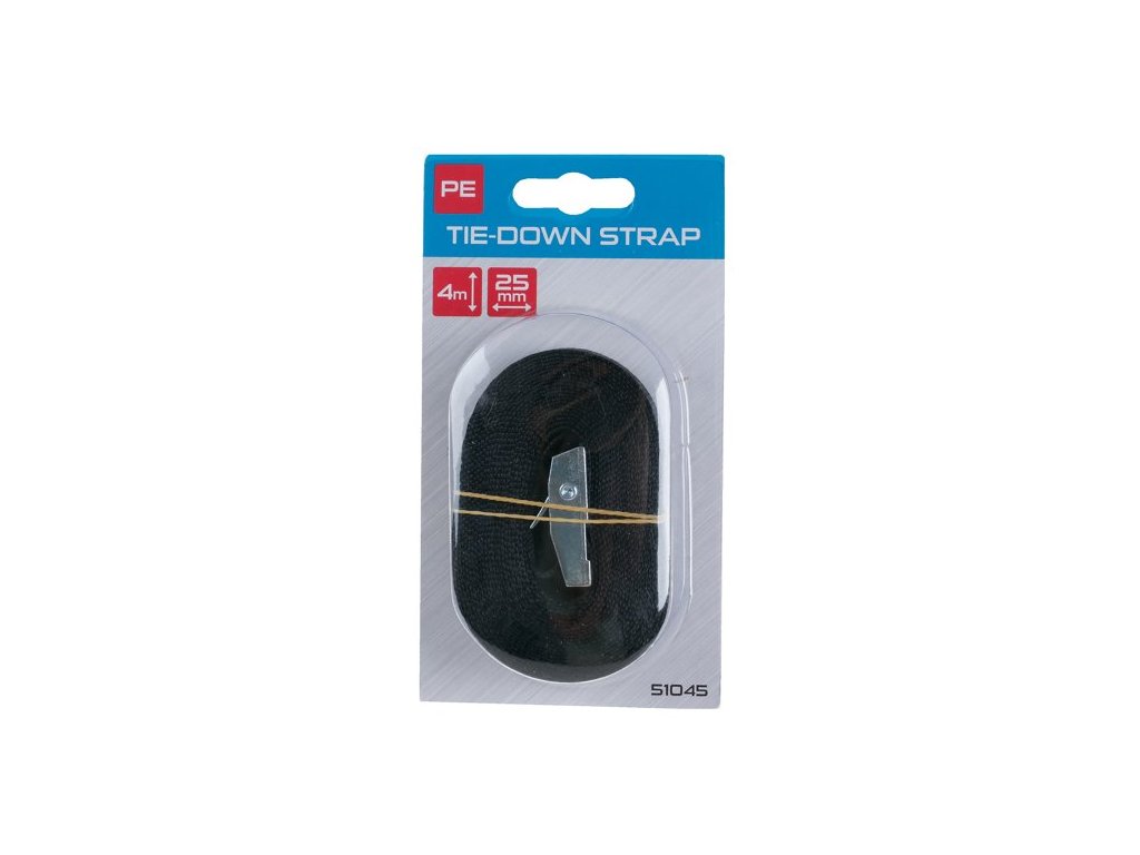 jednoduchý upínací pás s kovovou sponou šířka pásu 25 mm, délka 4 m pro upínání a zajištění nákladu a břemen při přepravě, fixace a zabezpěčení plachet, konstrukcí, atd.