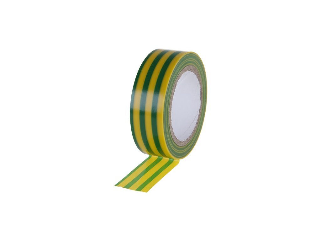 Samolepicí elektroizolační páska, měkčené PVC, zelenožlutá, použití : pro všeobecné použití v elektro průmyslu k izolování, páskování a značení.
