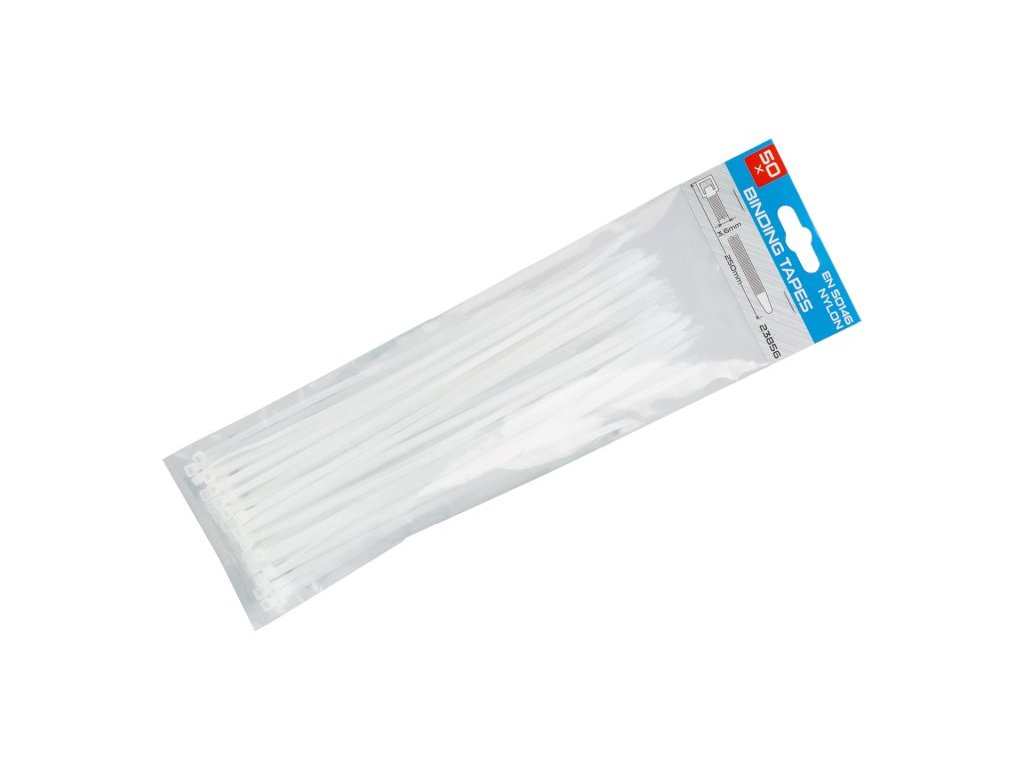 páska nylonová vázací - stahovací pásky splňují normu EN 50146 (Kabelové vázací spony pro elektrické instalace) minimální pracovní teplota 0°C, teplotní rozsah -40 až 85 °C, UV stabilní pevnost v tahu 18 kg, průměr stažení od 5 až do 65 mm