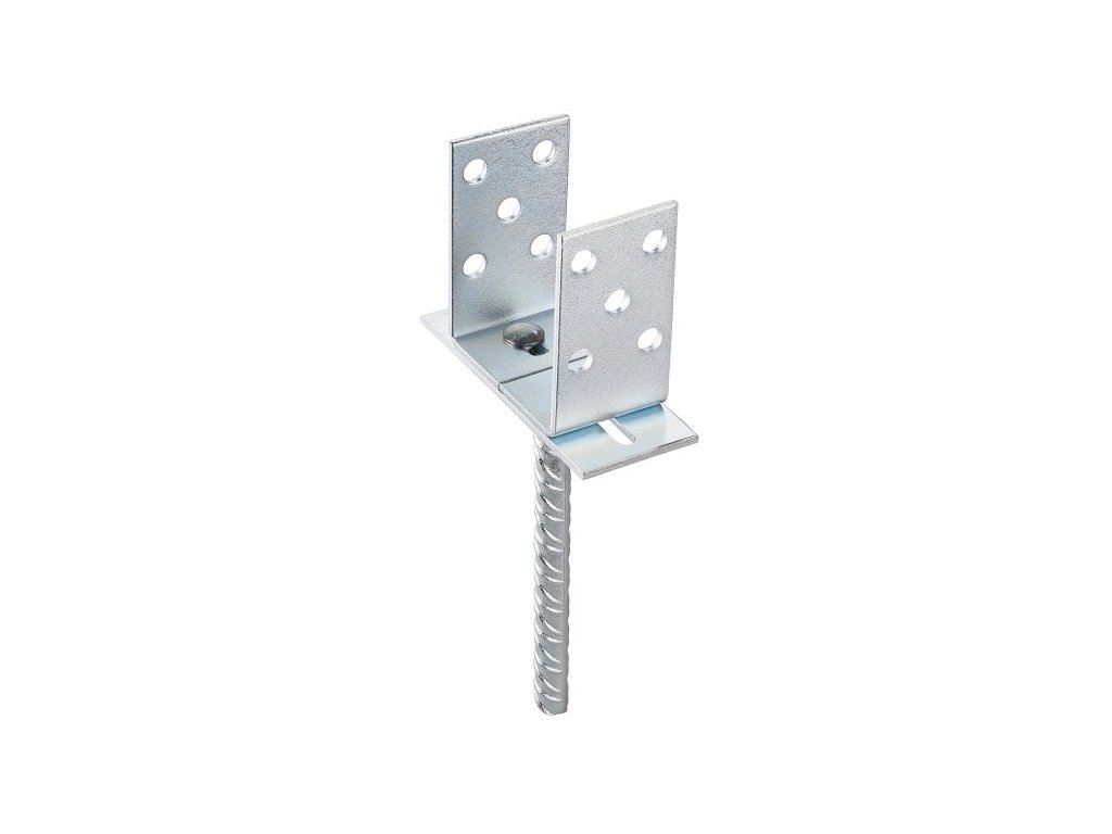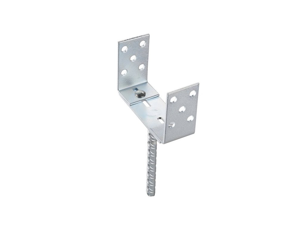 nastavitelná patka pro sloupky v rozsahu šířky (průměru) 80 - 160 mm povrchová úprava - žárově pozinkováno trn pro uchycení 18 x 200 mm síla stěny patky 2 mm