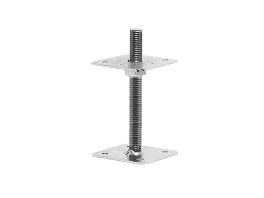 patka sloupku s nastavitelnou výškou rozměry patky 100 x 100 mm, rozteč otvorů 70 mm nastavitelná noha - závit M16, délka 200 mm zinkováno žárově - vysoká odolnost