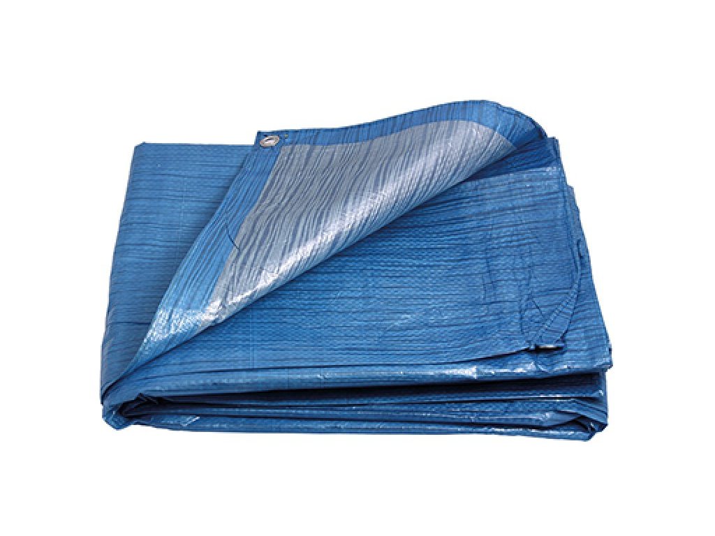 nepromokavá zakrývací PE plachta, garantovaná gramáž 70 g / m2 barevné provedení modro-stříbrná materiál - PE vlákna o vysoké hustotě, počet přízí na čtvereční palec - 7x7, jemnost příze: 600 denier, oboustraně laminovaná, zesílené rohy ochrana proti UV záření hmotnost 20000g