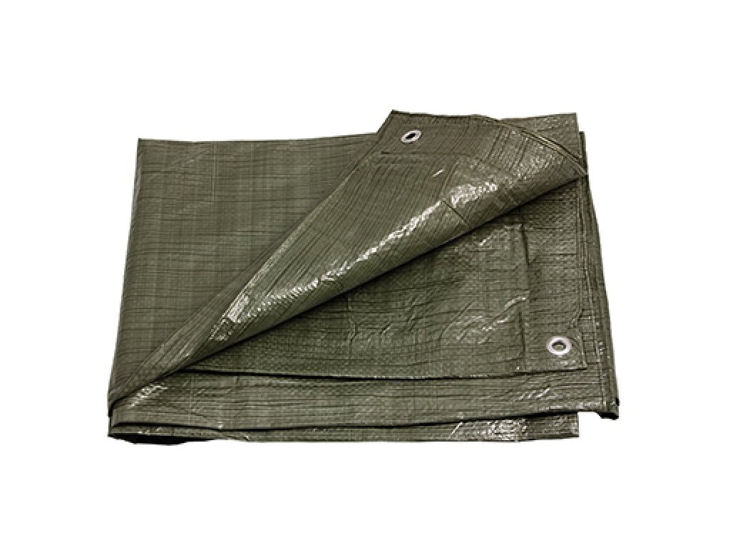 nepromokavá zakrývací PE plachta, garantovaná gramáž 70 g / m2 barevné provedení zeleno - zelená materiál - PE vlákna o vysoké hustotě, počet přízí na čtvereční palec - 7x7, jemnost příze: 600 denier, oboustraně laminovaná, zesílené rohy ochrana proti UV záření hmotnost 450g
