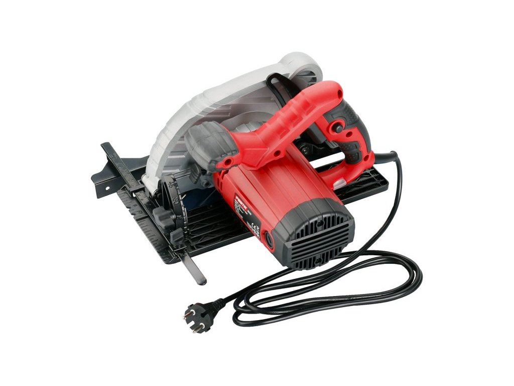kotoučová pila s výkonem 1400 W pro přímé, podélné i šikmé řezání dřeva, lamina a dalších deskových materiálů do tloušťky 63 mm (při použití kotouče 185 mm a kolmém řezu)