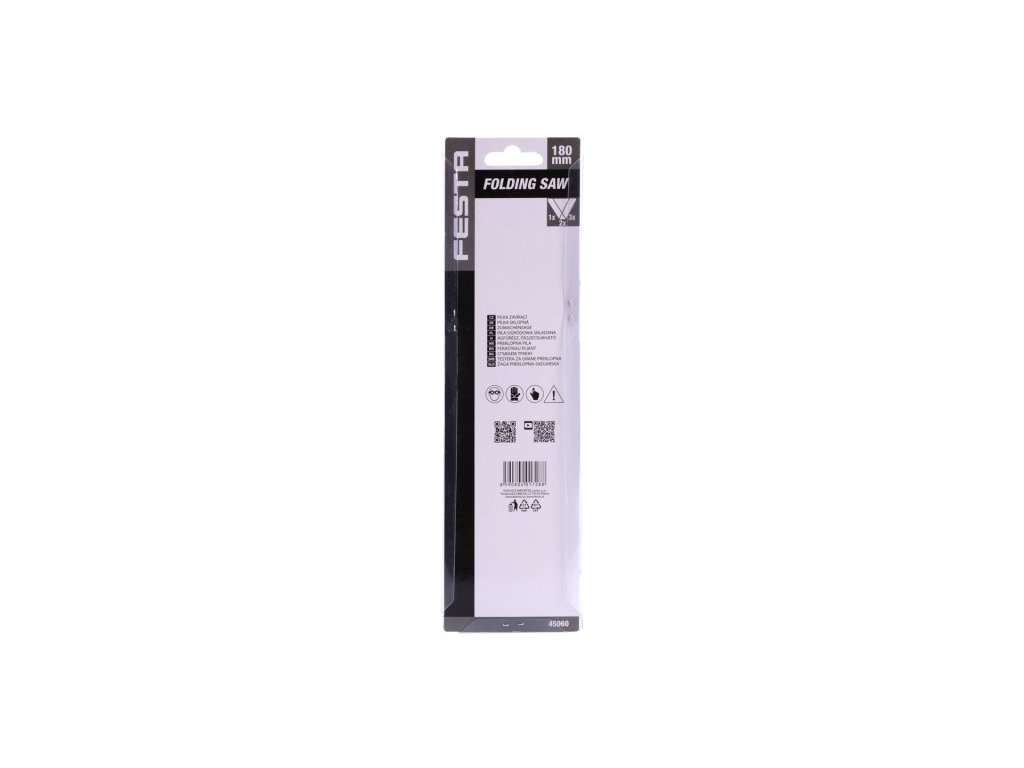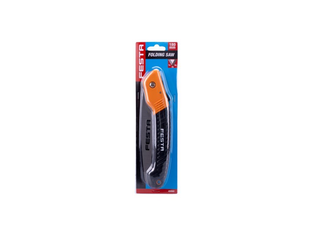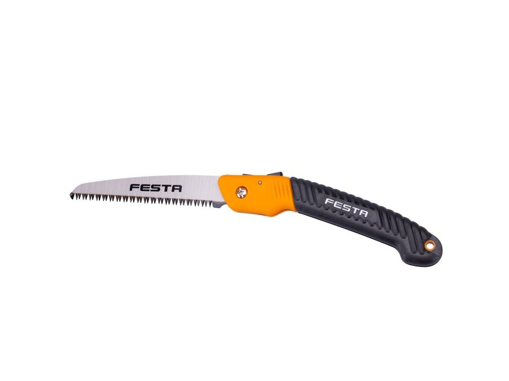 zahradní pilka FESTA - zavírací čepel z kvalitní legovaná oceli, trojbroušené zakalené zuby - rychlý a přesný řez, vhodné pro mokré i suché dřevo zavírací mechanizmus s pojistkou dvoukomponentní tvarovaná rukojeť délka břitu 180 mm