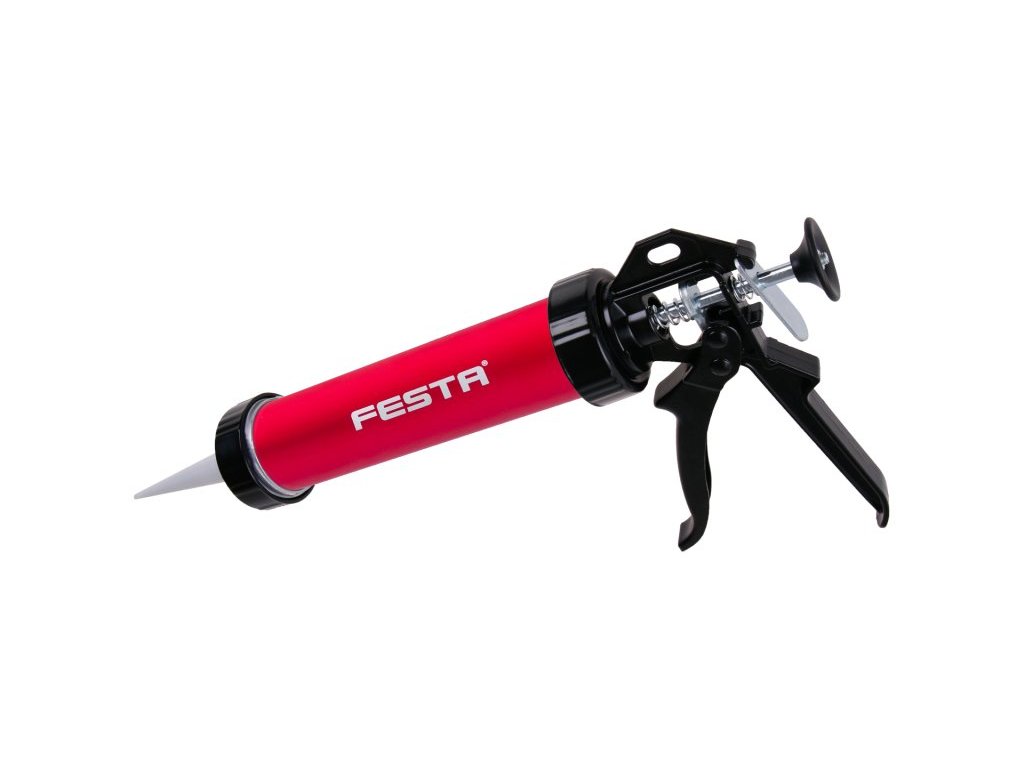 Vytlačovací pistole na tuby i kartuše 310 ml, uzavřené trubkové Alu tělo, kvalitní zesílený ocelový pojezdový i tlačný mechanismus, odolná kovová ručka, náhradní špičky - aplikátory 38014, použití : pro vytlačování tmelů v PVC sáčcích 310ml i tmely a lepidla v kartuších 310 ml.