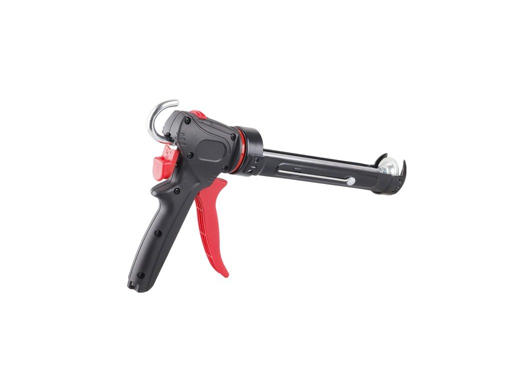 vytlačovací pistole na kartuše 310 ml masivní posuvný mechanismus pro husté a tuhé tmely, lepidla nebo chemické kotvy možnost nastavení dvou úrovní zpětného odskoku nebo jeho úplné vypnutí nastavení převodu síly a tím i množství vytlačeného tmelu 9:1 nebo 18:1 na jedno zmáčknutí