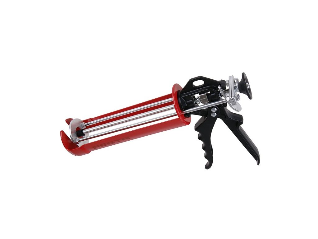 Vytlačovací pistole na chemické kotvy, speciální aplikační pistole pro vytlačování chemických kotev v balení o objemu 380ml, kvalitní zesílený ocelový tlačný i posuvný mechanismus, odolná kovová ergonomická ručka.