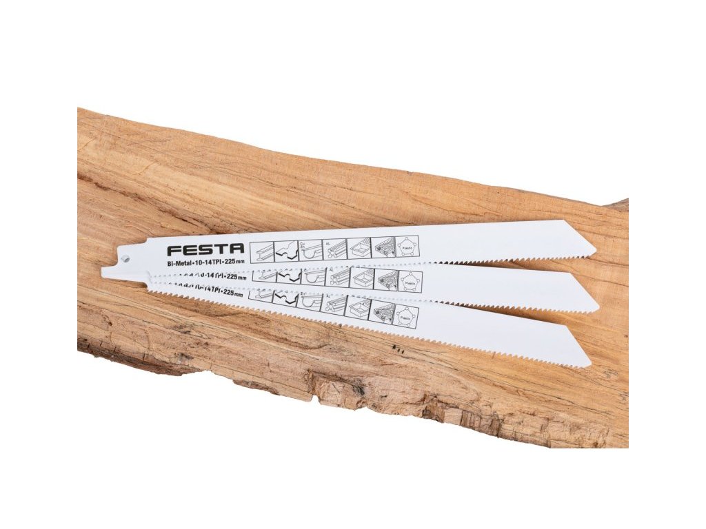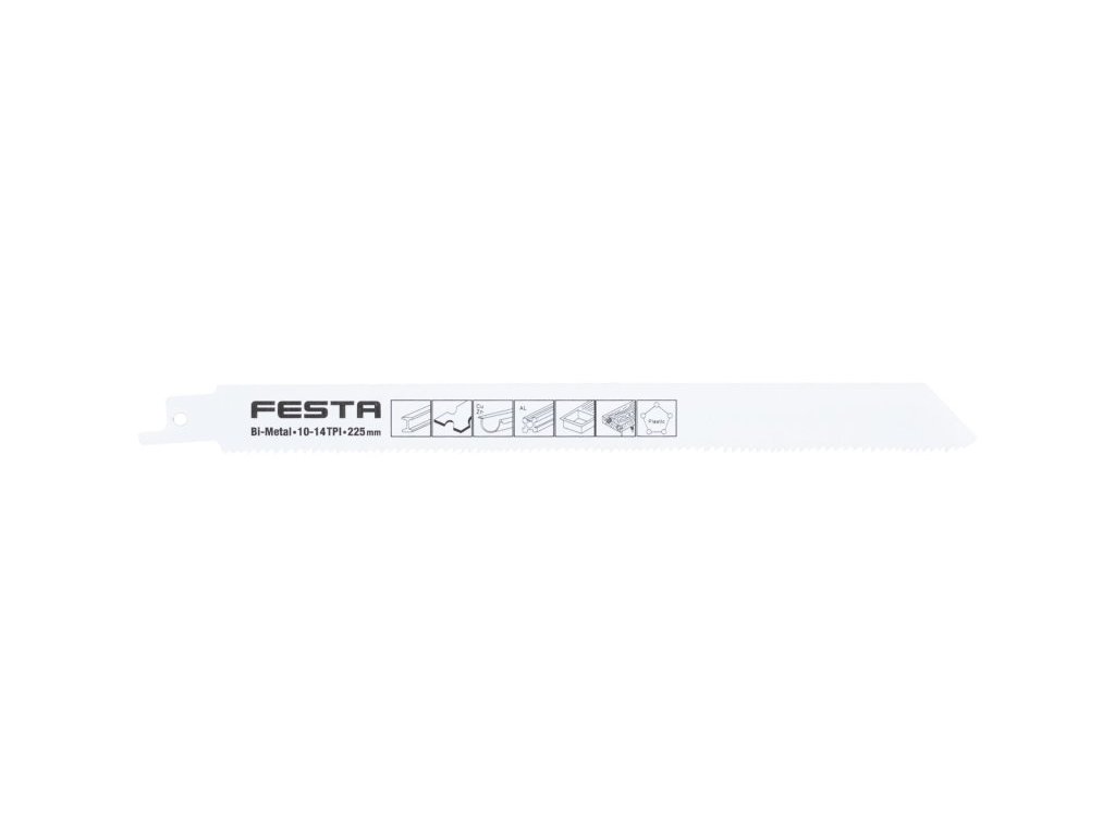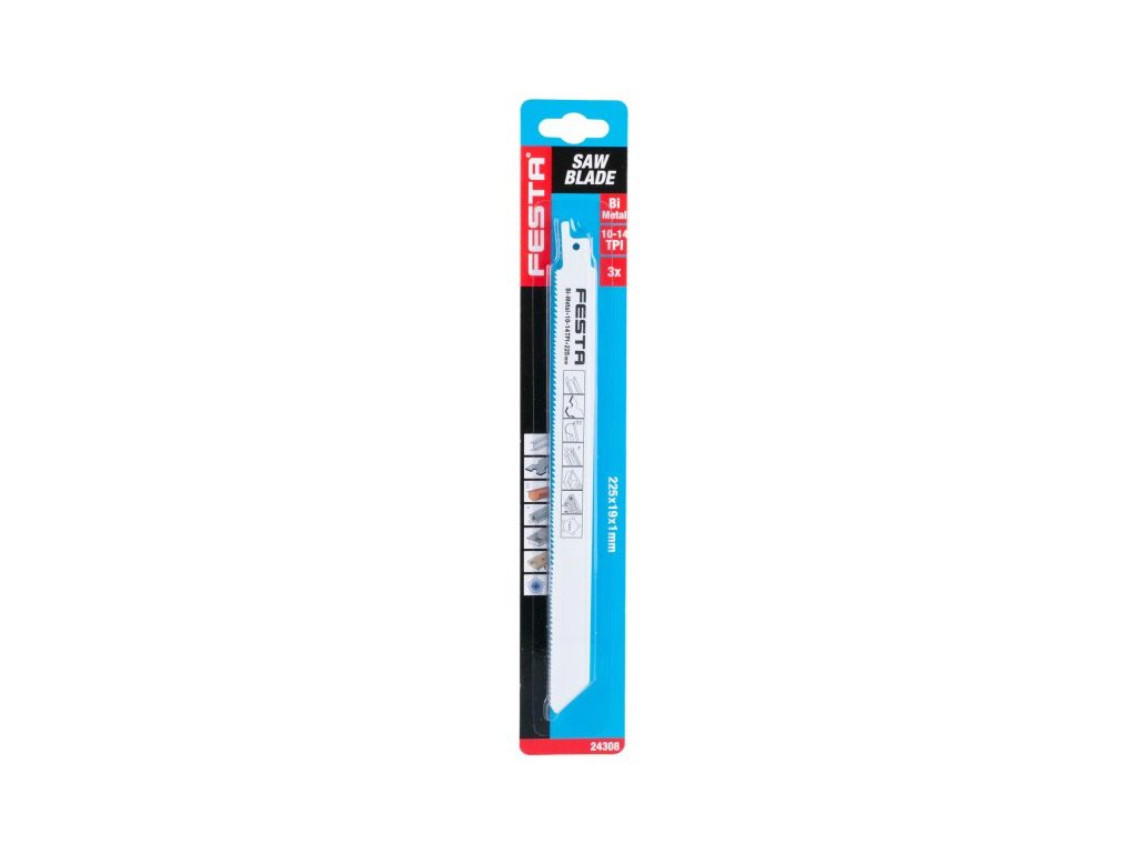 plátek pilový na kovy, plasty do elektrické pily ocasky Bi - Metal - materiál odolávající většímu tepelnému zatížení, delší životnost ostří plátku doporučená maximální tloušťka řezu - plechy 8 mm, kovové profily a trubky 170 mm rozměry : 225 x 19 x 1 mm, počet zubů na palec (TPI) - 10-14 Instruktážní video