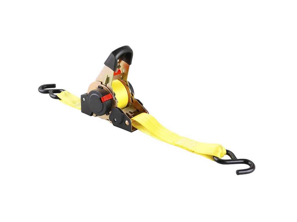 pás upínací samonavíjecí s ráčnou a háky napínací ráčnový mechanismus s pojistkou oboustranné upínání háky výhody samonavíjecího pásu - kompaktní rozměry, rychlá manipulace, uložení k bezpečnému zajištění nákladu při přepravě, lze použít na kotvení a zajištění stanů, stánků, nebo pro fixaci plachet při zakrývání apod.