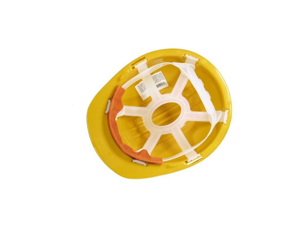 Pohodlná lehká přilba, s nastavitelnou velikostí pomocí ozubeného pásku, 6ti bodovým PE hlavovým křížem, bez větracích otvorů.