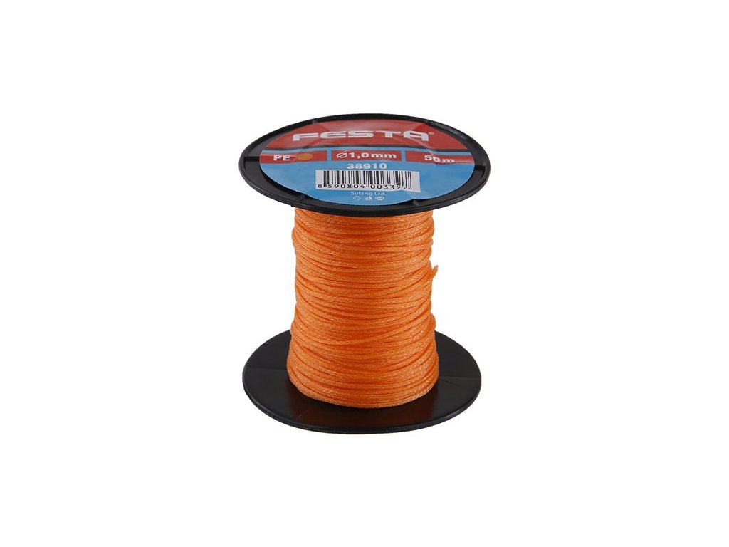 Zednický provázek FESTA, materiál PE ( polyethylen ), odolný proti vodě, splétaný - vynikající vlastnosti v tahu, cívka - návin 50 m, použití : ve stavebnictví, v domacnosti, na zahradě…, .