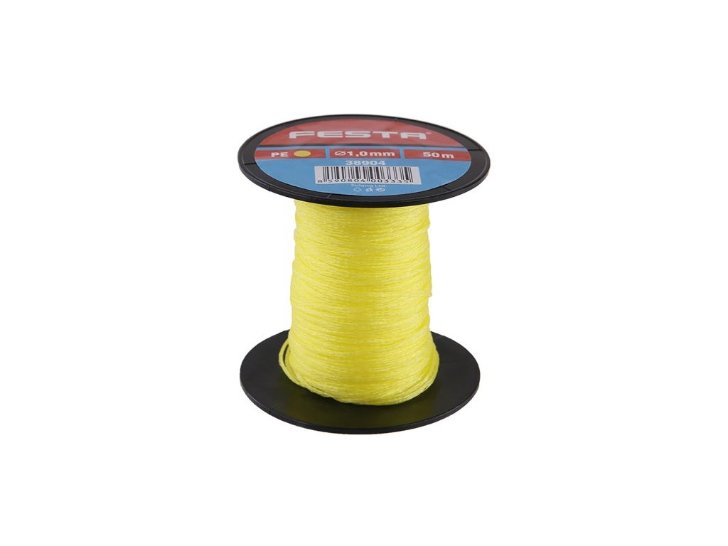 Zednický provázek FESTA, materiál PE ( polyethylen ), odolný proti vodě, splétaný - vynikající vlastnosti v tahu, cívka - návin 50 m, použití : ve stavebnictví, v domacnosti, na zahradě…, .