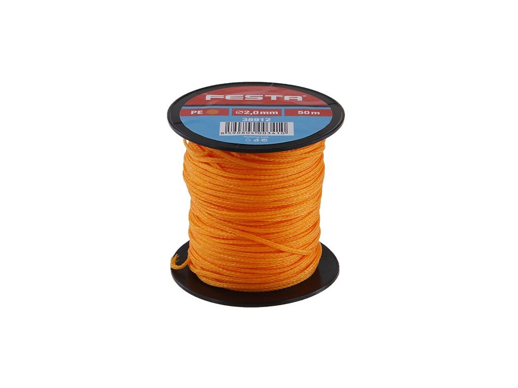 Zednický provázek FESTA, materiál PE ( polyethylen ), odolný proti vodě, splétaný - vynikající vlastnosti v tahu, cívka - návin 50 m, použití : ve stavebnictví, v domacnosti, na zahradě…, .