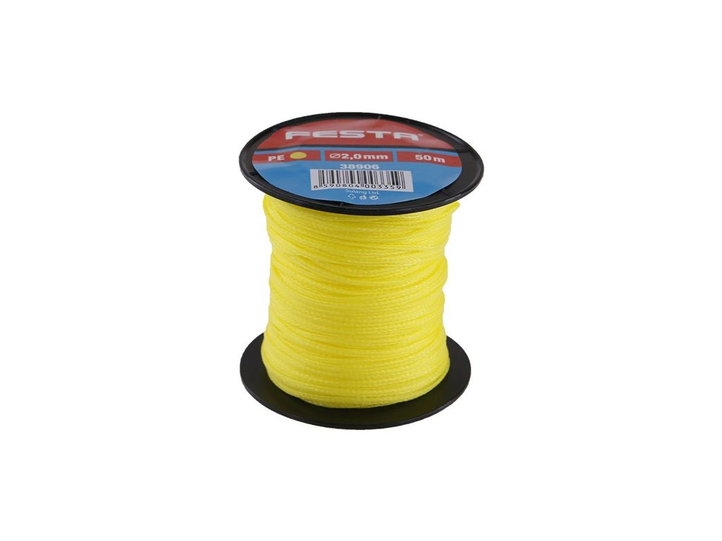 Zednický provázek FESTA, materiál PE ( polyethylen ), odolný proti vodě, splétaný - vynikající vlastnosti v tahu, cívka - návin 50 m, použití : ve stavebnictví, v domacnosti, na zahradě…, .