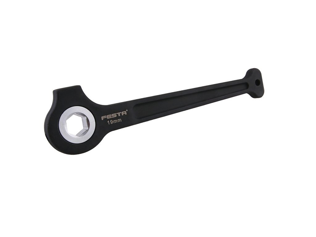 Lešenářská ráčna FESTA 19 mm je klíč - ráčna k trubkovému lešení. Tradiční lešenářská ráčna s vnitřní rohatkou, která obsahuje jen 6 velkých zubů. Díky tomu je mechanismus velmi odolný stejně, jako celá ráčna, kterou často používají i jako kladivo. Hmotnost 0,840 kg.