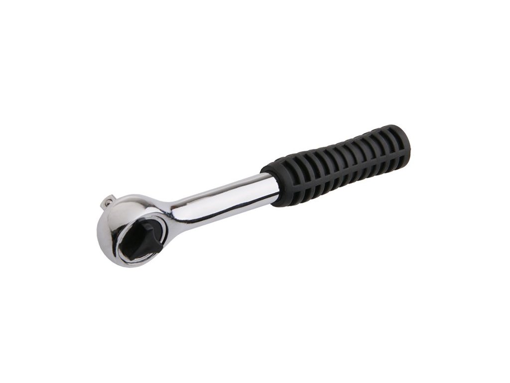 Kovová ráčna s 43 zuby a přepínací páčkou. Gumová protiskluzová rukojeť.