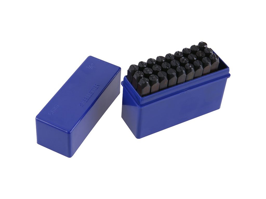 Ruční raznice - písmena abecedy, kvalitní uhlíková ocel - pevnost do 800 N/mm2, zakalené hroty - vysoká tvrdost, rozměry: výška písmen - 6 mm, balení: plastový box.