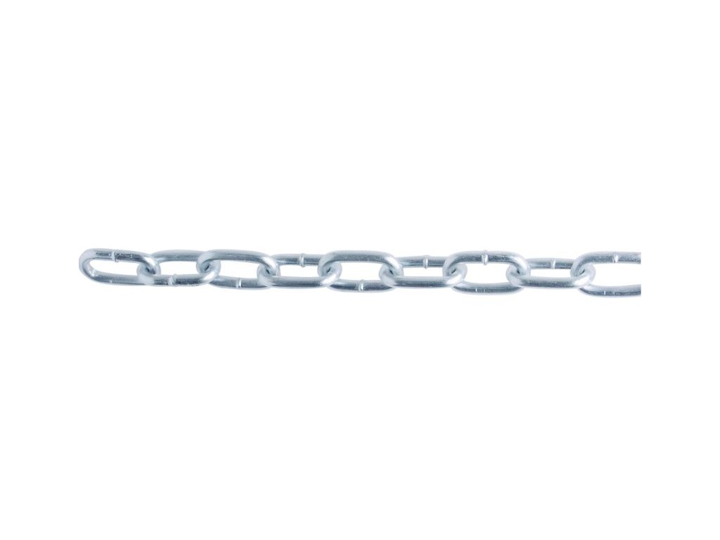 řetěz vyrobený z konstrukční oceli dle normy DIN 5685A galvanicky zinkováno rozměr oka : průměr - 4 mm vnější délka * šířka - 29,5 * 15,25 mm