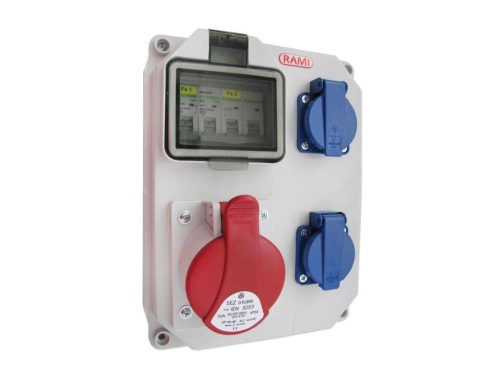 - další popis: Zásuvková rozvodnice obsahuje: - 2x zásuvka 230V - 1x zásuvka 400V/32A (IEN3253) - 1x jistič 16B/1 - 1x jistič 32B/3