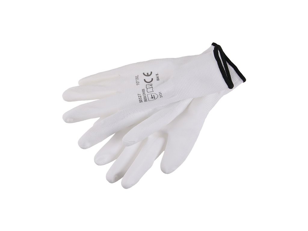 Bílý úplet z jemného nylonu máčené ve vrstvě polyuretanu, CE EN 388, velikost 10.