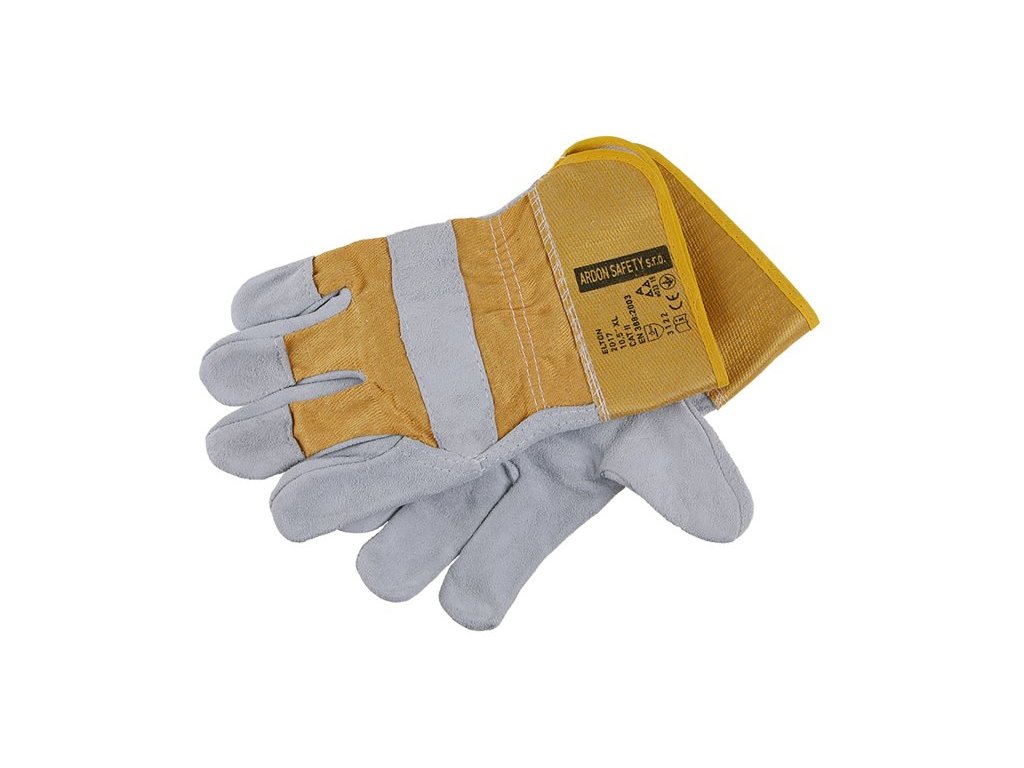 Kvalitní šedá hovězí štípenka, hřbet z červené bavlny, vyztužená manžeta, CE EN 388, vel. 11.
