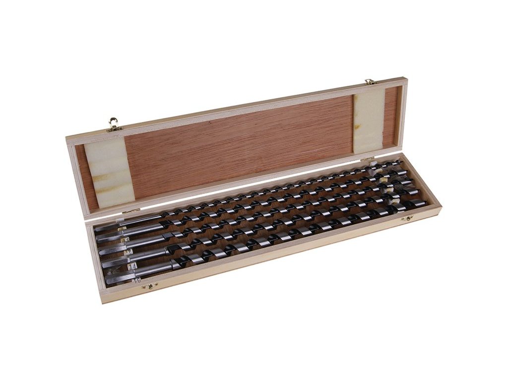 Sada kvalitních hadovitých vrtáků na dřevo 8, 10 , 12, 14, 16 * 460 mm, vyrobeny z kvalitní oceli, přesné zpracování, použití: pro vrtání přesných děr do neštípavých materiálů, pro neprotáčivé upínání má vrták šestihrannou stopku, balení - dřevěný box.