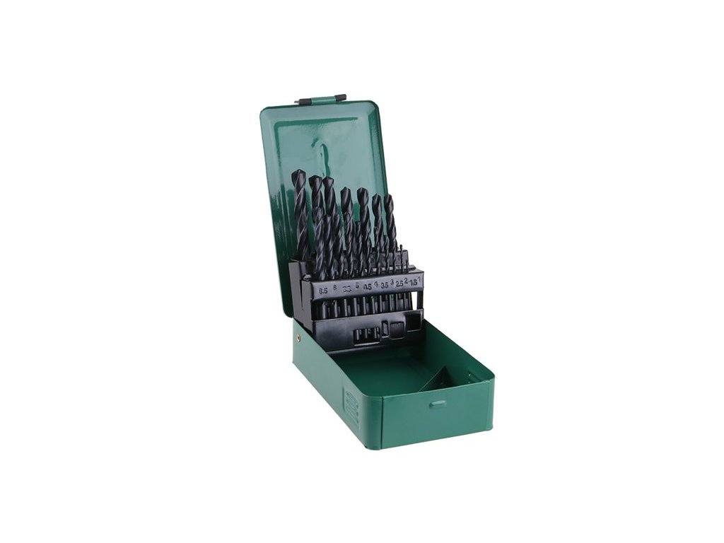 Sada vrtáků HSS DIN 338, RN, je vyrobená z kvalitní rychlořezné oceli (HSS). Přesné vyrobená šroubovice pro kvalitní výkon, přesnost a dobré středění, vybroušení úhlu špičky vrtáku 118°, pro vrtání běžné konstrukční oceli, baleno v plechové krabičce.