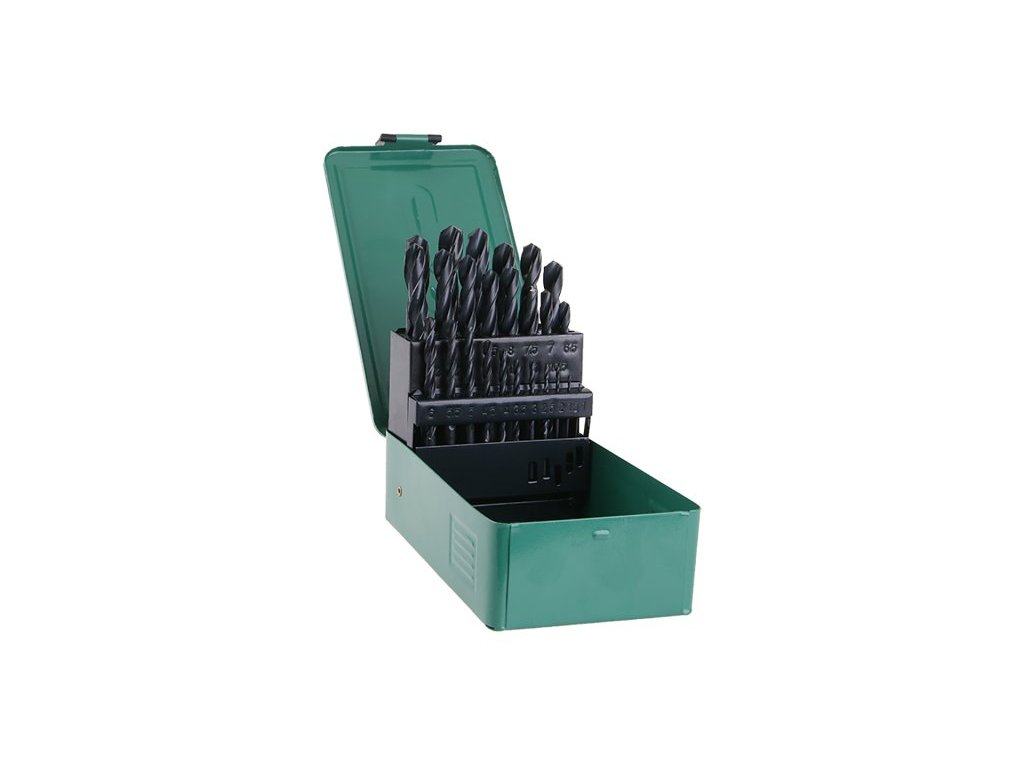 Sada vrtáků HSS DIN 338, RN, je vyrobená z kvalitní rychlořezné oceli (HSS). Přesné vyrobená šroubovice pro kvalitní výkon, přesnost a dobré středění, vybroušení úhlu špičky vrtáku 118°, pro vrtání běžné konstrukční oceli, baleno v plechové krabičce.