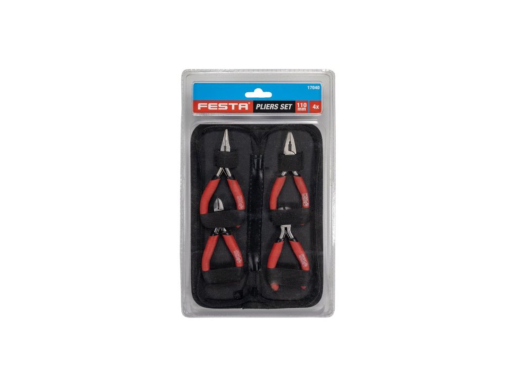Sada minikleští (110mm) v praktickém uzavíratelném pouzdře, obsah sady: