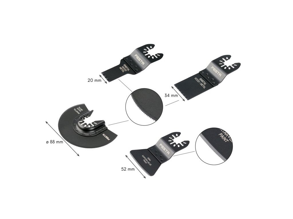 3 x plátek BiM - vhodné pro řezání a ponorné řezání kovu, tvrdého i měkkého dřeva, plastu, sádrokartonu, apod.