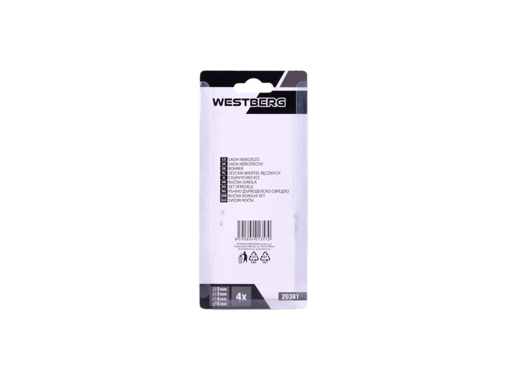 Sada 4 ks nebozezů, jednoduchý nástroj pro rychlé navrtávání dírek do dřeva a měkých materiálů, rozměry: 2, 3, 4, 5 mm.