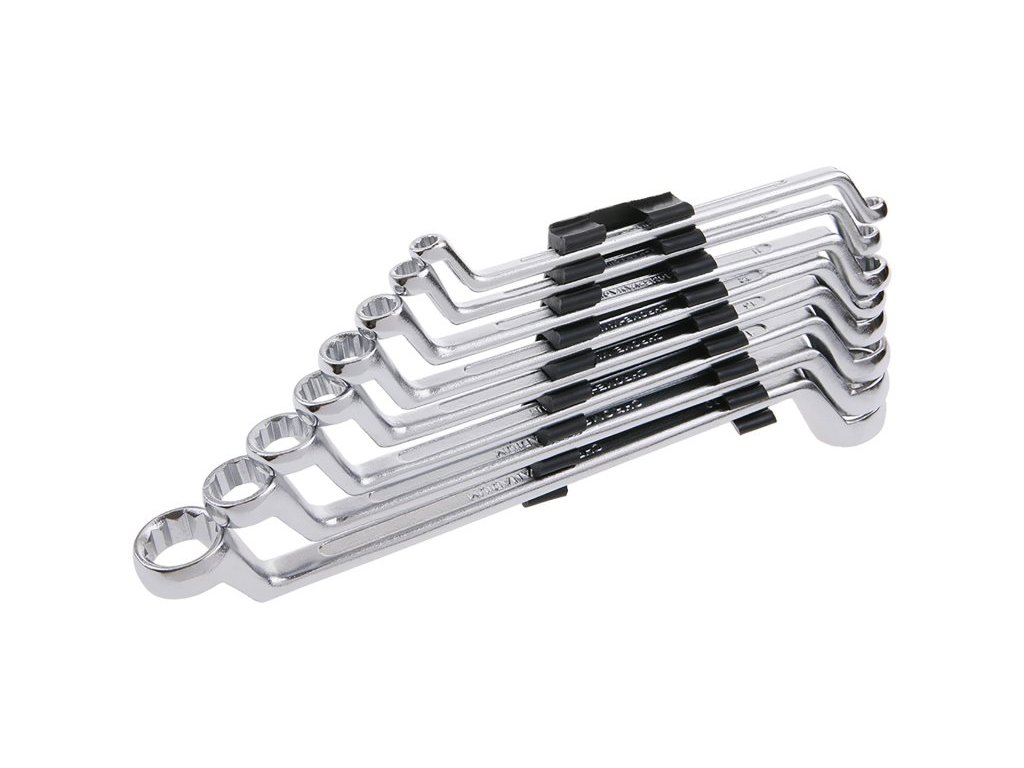 Sada očkoplochých klíčů FESTA je včetně organizéru, sešitého z velmi odolné a pevné tkaniny s oky pro zavěšení. Nástrčné očkoploché klíče jsou vyrobeny kováním z kvalitní chromvanadiové oceli. Tato ocel je zušlechtěná na požadované vlastnosti a povrchově upravená matným tvrdochromem pro dosažení optimální povrchové tvrdosti a odolnosti vůči korozivním vlivům. Kvalitou, tvrdostí a přesností přesně odpovídají normě DIN838.