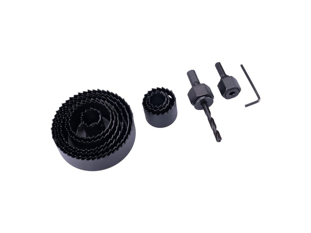 Sada vykružovacích pil 13ks do dřeva a sádrokartonu, průměr: 19, 22, 25, 35, 44, 51, 60, 68, 76, 82 mm + inbus + 2x hlavička.